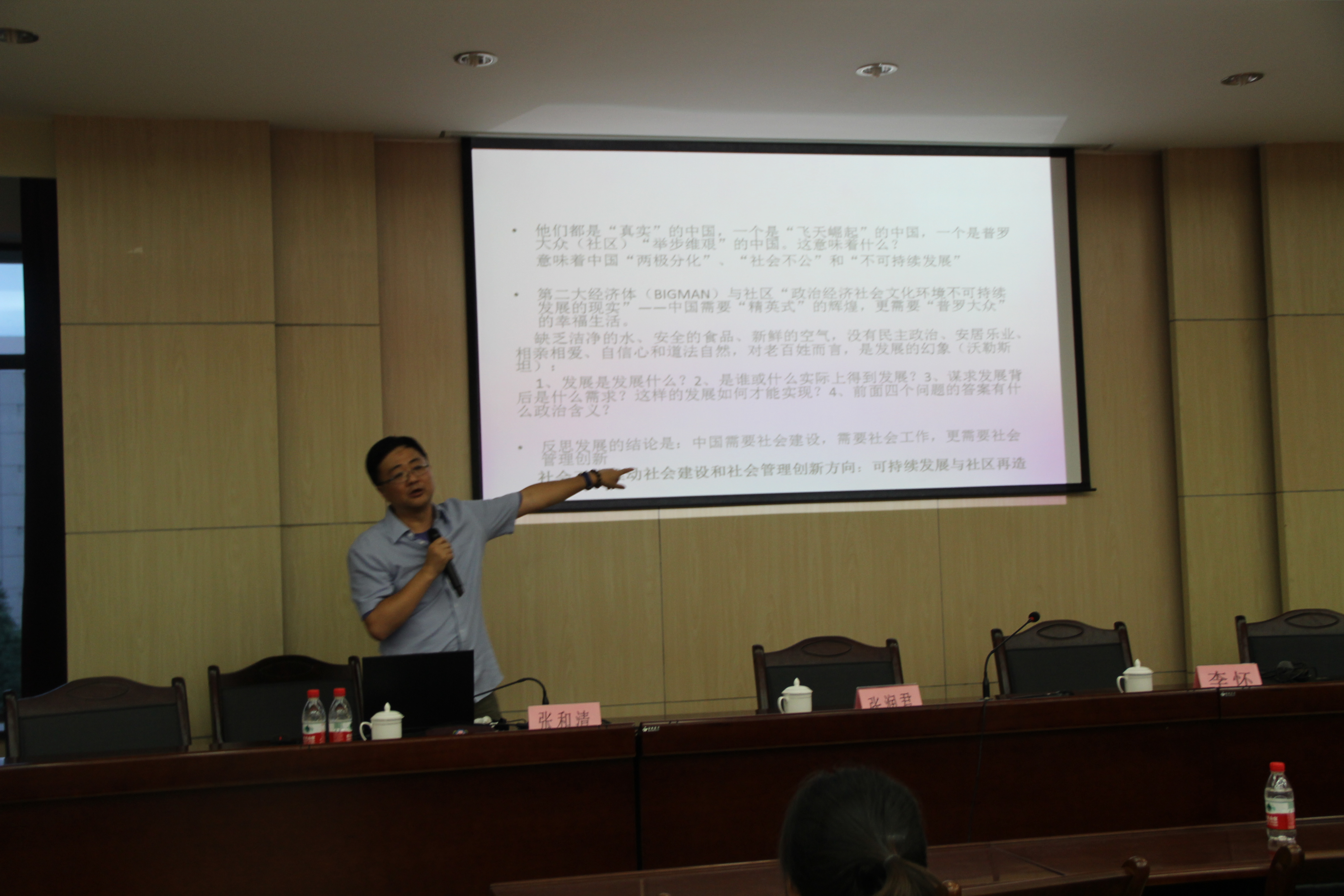 6月26日晚上,应学院邀请,中山大学社会工作系主任张和清教授在教学10号楼D区四楼多功能报告厅作了一场题为“社会工作与社区可持续发展”报告,报告会由老王探花