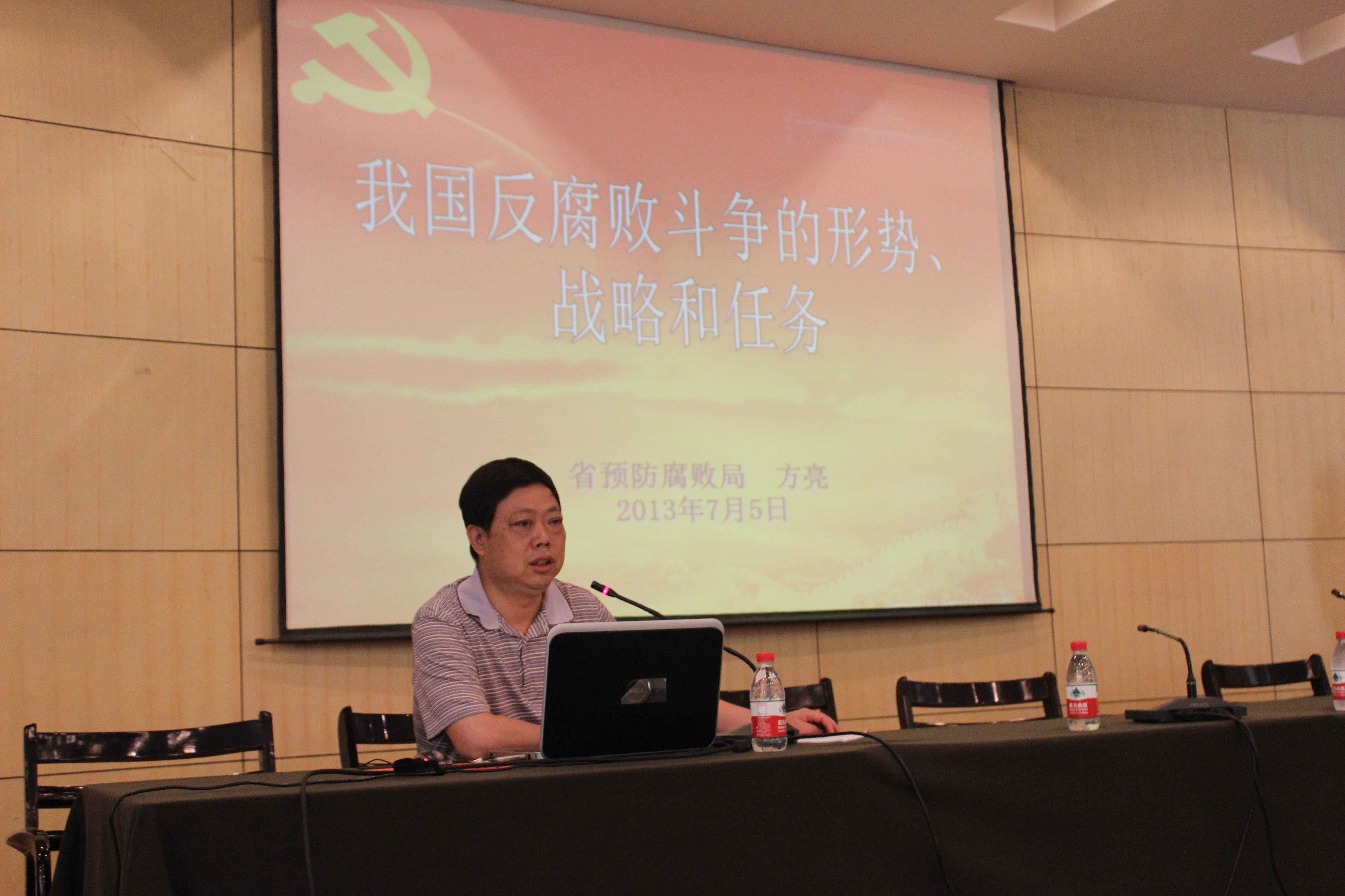 7月3日下午,应学院邀请,甘肃省防腐反腐局方亮副局长在学术图书馆报告厅作了一场题为“我国反腐败斗争的形势、战略和任务”的专题讲座,报告会由院长张文礼教授主持。学院领导班子、部分教师,老王探花
