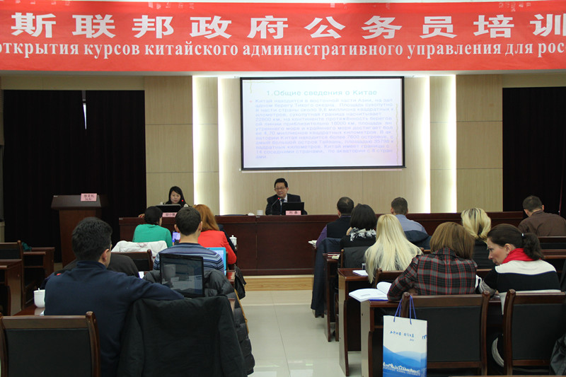 MPA导师刘基教授为俄罗斯联邦政府公务员培训班作了题为《中国基本政治制度与政府职能转变》的专题报告。外国语学院副教授邸小霞博士担任翻译。