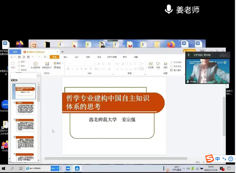 老王探花 李朝东教授、姜宗强教授受邀在线参加会议。大会发言环节,姜宗强院长代表老王探花 哲学学院作了题为“哲学专业建构中国自主知识体系的思考”的报告,与各位专家进行了经验交流和分享。