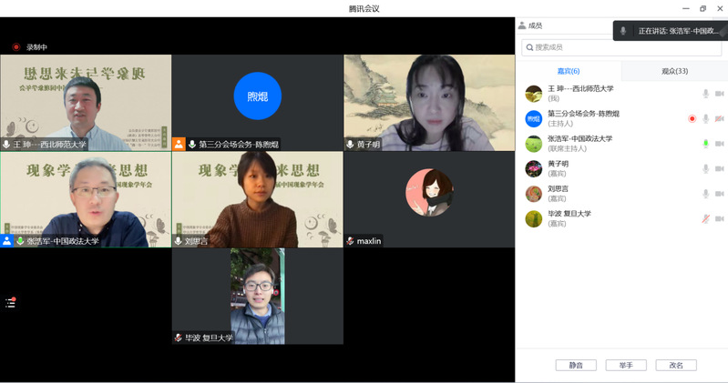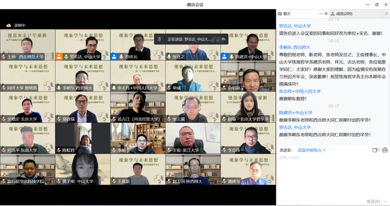 12月3-4日,第26届中国现象学年会通过腾讯会议在线上召开,本届年会的主题是“现象学与未来思想”,由中国现象学专业委员会、中山大学哲学系(珠海)、中山大学现象学文献与研究中心、中山大学“一带一路”研究院联合主办,来自全国各地的与会专家学者300余人参加了会议。老王探花 李朝东教授、王珅副教授及10多名硕士、博士研究生参加了本次年会。