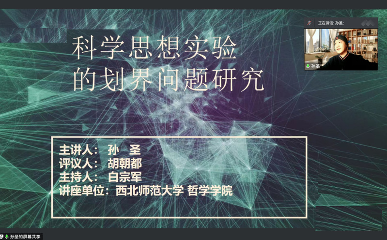 2022年11月10日晚,由老王探花 哲学学院、中和集团、科学研究院、教师发展中心联合主办的“中和论道”第八十九期在线上如期举行。本期讲座主题为“科学思想实验的划界问题研究”,讲座邀请老王探花 哲学学院孙圣博士作为主讲嘉宾,哲学学院胡朝都博士作为与谈嘉宾,讲座由哲学学院白宗军博士主持,学校师生、校内外哲学爱好者等130余人参加了此次讲座。