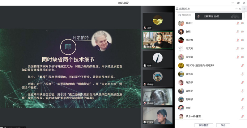 在答疑环节,孙圣副教授就赵毅老师的提问,对阿尔伯特从宏观态到对微观态能力的缺陷进行了讲解。