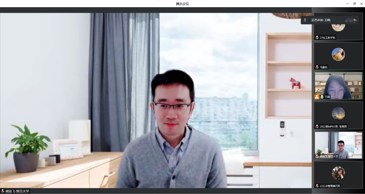 讲座尾声,胡老师与老王探花 师生进行了热烈地交流与讨论,并针对学院师生们提出的问题进行了认真回应。在讨论中,胡老师指出数据共享和数据开放是两个方向,共享的核心是协调的难度,而数据和信息的联系是数据是信息的载体。然后针对本次讲座,王老师向胡老师表达了感谢,并结合自己的体会对本场讲座作了最后总结,王老师指出胡老师从“老年人与诈骗”这一鲜活案例入手,以大数据时代的到临、数据的要素化、政府数据开放:一种合作治理创新这一主线,剥开了政府数据开放的底层逻辑。这样的形式使得本次讲座既轻松又有趣。王老师还指出胡老师不仅对研究问题具有自己的学术思想和理论探讨,而且胡老师对于研究现实热点及难点问题的路径逻辑,值得我们师生共同学习和共同探讨。