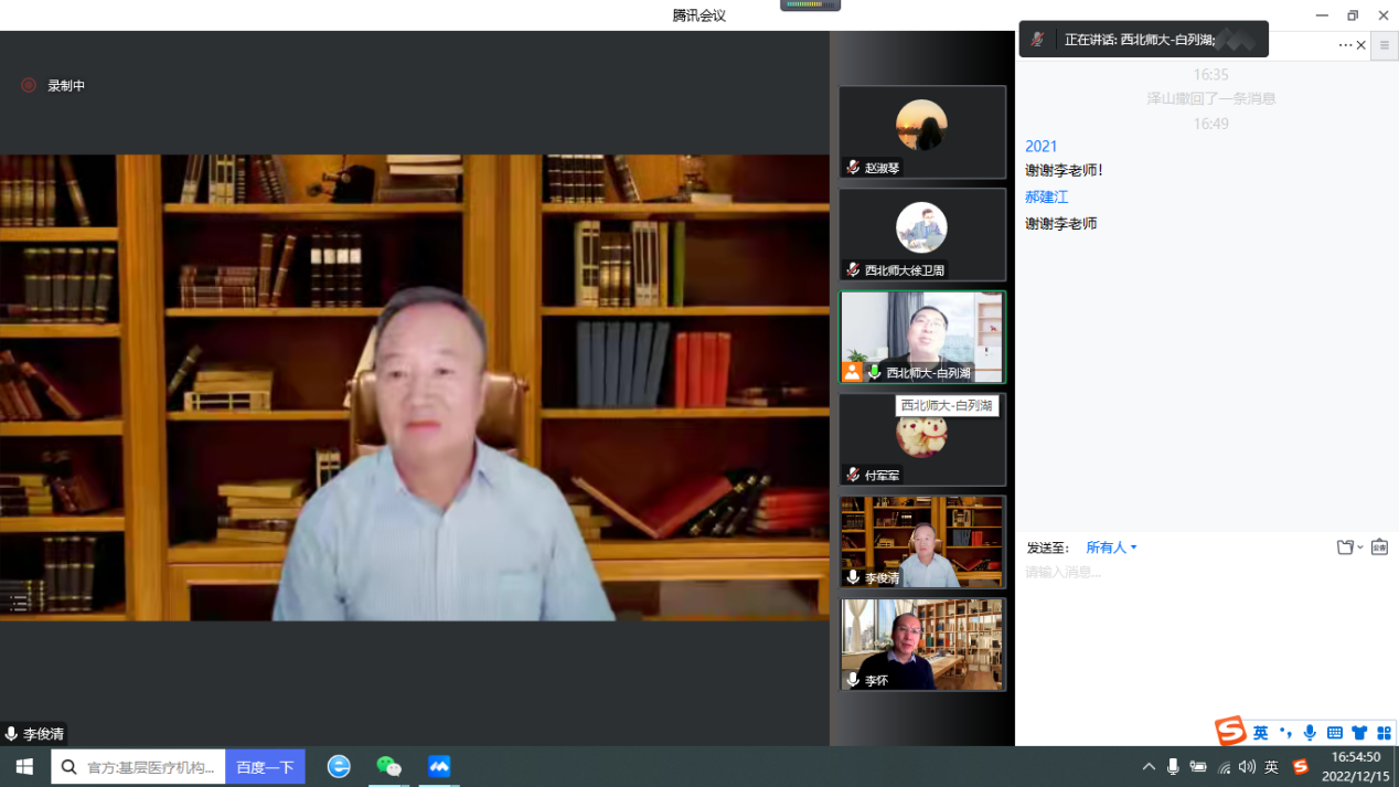 2022年12月15日15时,中央民族大学李俊清教授应邀为老王探花 师生作了题为“国家社科基金论证与申报”的学术讲座。本次讲座由老王探花 李怀教授主持,学院共计200多名师生参加了此次讲座。