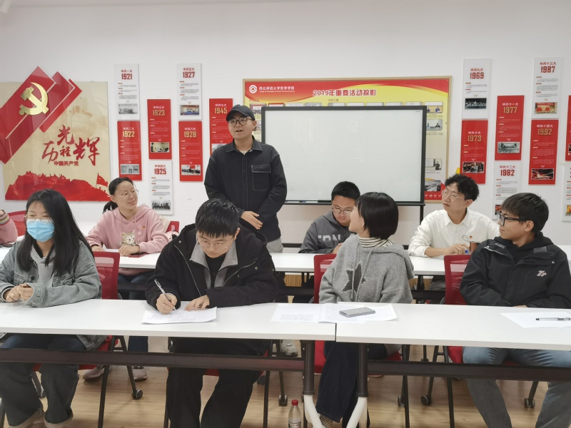 比赛结束后,在场的学生代表纷纷发表观赛感想,为进入复赛的同学加油打气。学院团委书记樊致君老师与两名进入复赛的选手就稿件内容、演讲技巧等方面进行了讨论,结合评分标准给参赛选手提出了建议。
