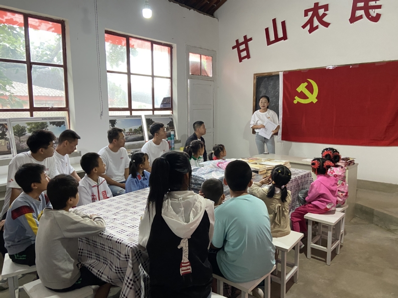 实践活动开始前,队员们号召全院学生开展了“好伙伴共成长”募捐活动,收到了同学们向甘山村的孩子们捐赠的图书和玩偶。实践期间,队员们组织了一系列趣味游戏与孩子们互动,开展了“未来的甘山”绘画比赛。孩子们纷纷拿起画笔,一笔一划地描绘着心目中美好的家乡,比赛结束后实践团也为孩子们送上了书包、台灯、钢笔等奖品。此外,学生第二党支部的党员也为孩子们精心准备了一节党课,向孩子们介绍了国旗、党旗和团旗等小知识。