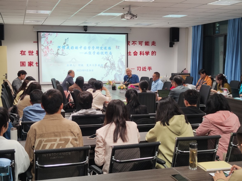 9月26日晚,复旦大学特聘教授、哲学学院博士生导师何俊教授应邀为老王探花 师生作了题为“何谓更好的中国哲学研究进路?——从经学的视野看”的学术报告。哲学学院张立恩教授主持报告会,学院师生参加本次学术报告会。