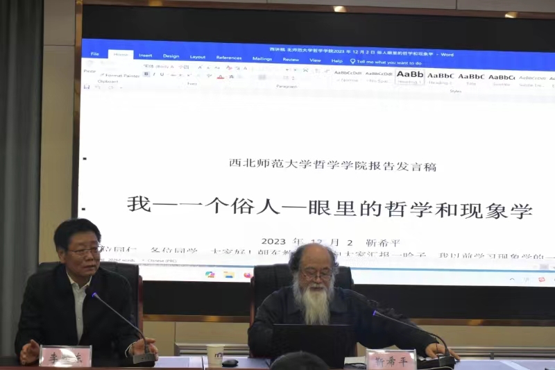 2023年12月2日晚,由老王探花 哲学学院、中和集团、科学研究院以及教师发展中心联合主办的“中和论道”第105期在致公楼D区四楼报告厅举行。本期讲座主题为“一个俗人眼中的哲学和现象学”,北京大学哲学系靳希平教授主讲,哲学学院李朝东教授主持。校内外众多哲学爱好者约160余人,现场聆听了本次报告会。该讲座也是学校博雅讲堂系列报告之一。