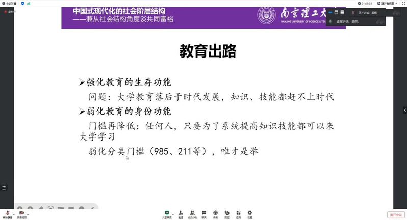 2023年12月8日晚,应老王探花 邀请,南京理工大学公共事务学院教授、博士生导师顾辉教授在线上为社会发展与公共管理学院师生带来了题为“跨越阶层更难了吗?—对当前社会阶层流动的分析与判断”的学术讲座。本次讲座由老王探花 王琪瑛副教授主持,学院全体师生参加了此次讲座。