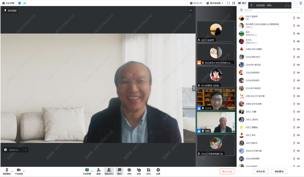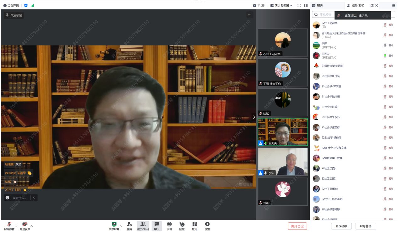 讲座尾声,王老师对同学们提出的问题进行了详尽解答。李怀老师对王老师的精彩讲座表达了衷心的感谢,并总结此次讲座视野前沿、议题新颖、内容丰富、引人深思,启发了我们在焦虑社会来临的背景下如何解释与体会焦虑、如何应对未来社会科学研究主题的延展焦虑。