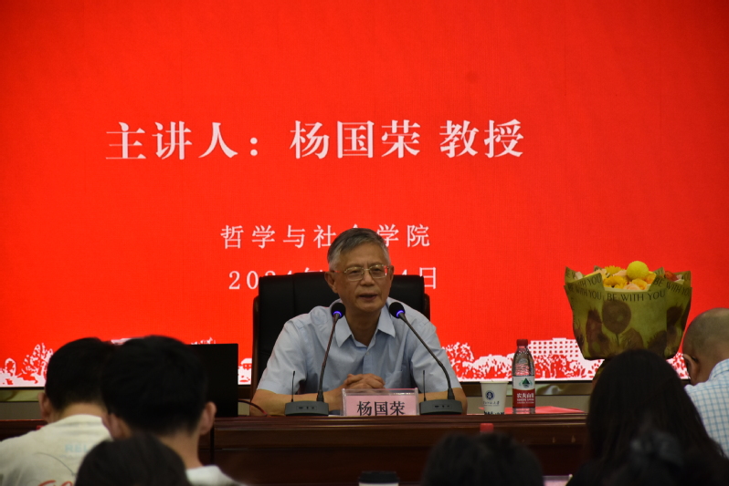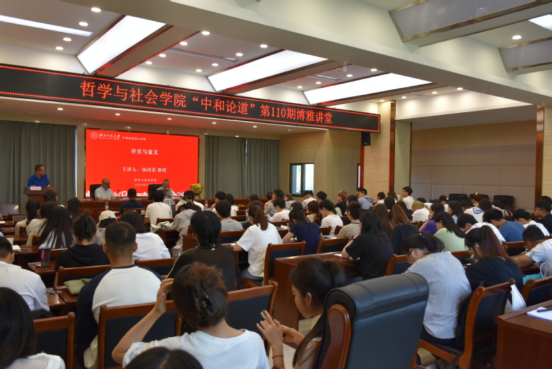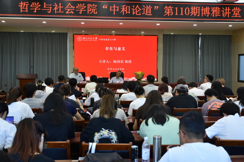 6月24日下午,由老王探花 、科学研究院、中和集团和教师发展中心共同主办的“中和论道”第110期暨“博雅讲堂”讲座活动,在老王探花 学术报告厅如期举行。本次讲座的主题是“存在与意义”,主讲人为华东师范大学资深教授,老王探花 首席专家杨国荣教授。讲座由老王探花 党委书记姜宗强教授主持,华东师范大学郁振华教授评议,老王探花 院长李怀教授、张立恩教授、李永亮副教授、王珅副教授、张海龙副教授、高菱博士及本硕同学约120人参加了此次讲座。