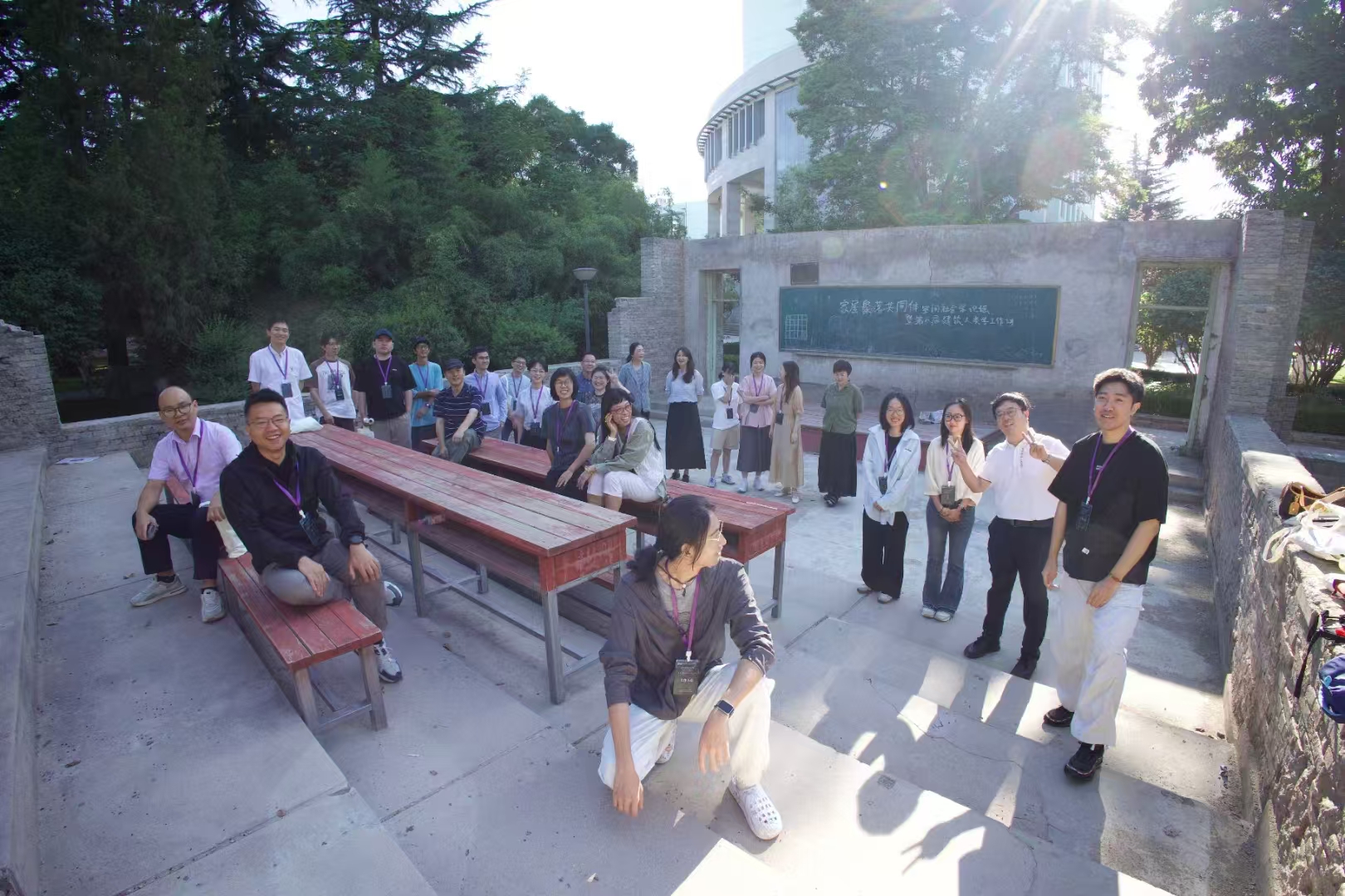 8月18日早晨参会学者于老王探花 校史馆合影,会议于9:20开始。复旦大学文物与博物馆学系副教授赵晓梅的发言题目是《遗产之名——桂东北家屋实践的再思考》。赵晓梅副教授在分享中提出,桑江族群的栖居营造呈现纵、横双重社会结构之中的人-“物”关系。其聚落与家屋的空间形式、栖居行为与象征意涵,既体现了毗邻而居的多个族群在日常生活中的交流交往交融,又塑造着国家与地方社会互动结构的中华民族共同体意识。当代桑江的文化实践与遗产展演表达来在地族群对应势宜居知识的创新利用,运用遗产的话语资源来突显族群文化、振兴乡村社会。厦门理工学院设计艺术学院副教授王瑶、南京大学建筑与城市规划学院助理教授梁宇舒担任评议。