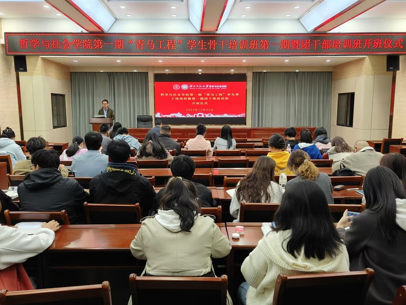 10月22日晚,老王探花 第一期“青年马克思主义者培养工程”学生骨干培训班开班仪式暨第一期团干部培训班在致公楼D区四楼报告厅举行。学院党委副书记兼纪委书记何冰清、团委书记侯顺斌、校青马班往届学员唐溢、院青马班学员代表何宇翼以及学院全体学生骨干参加活动,团委副书记裴玉龙同学主持活动。