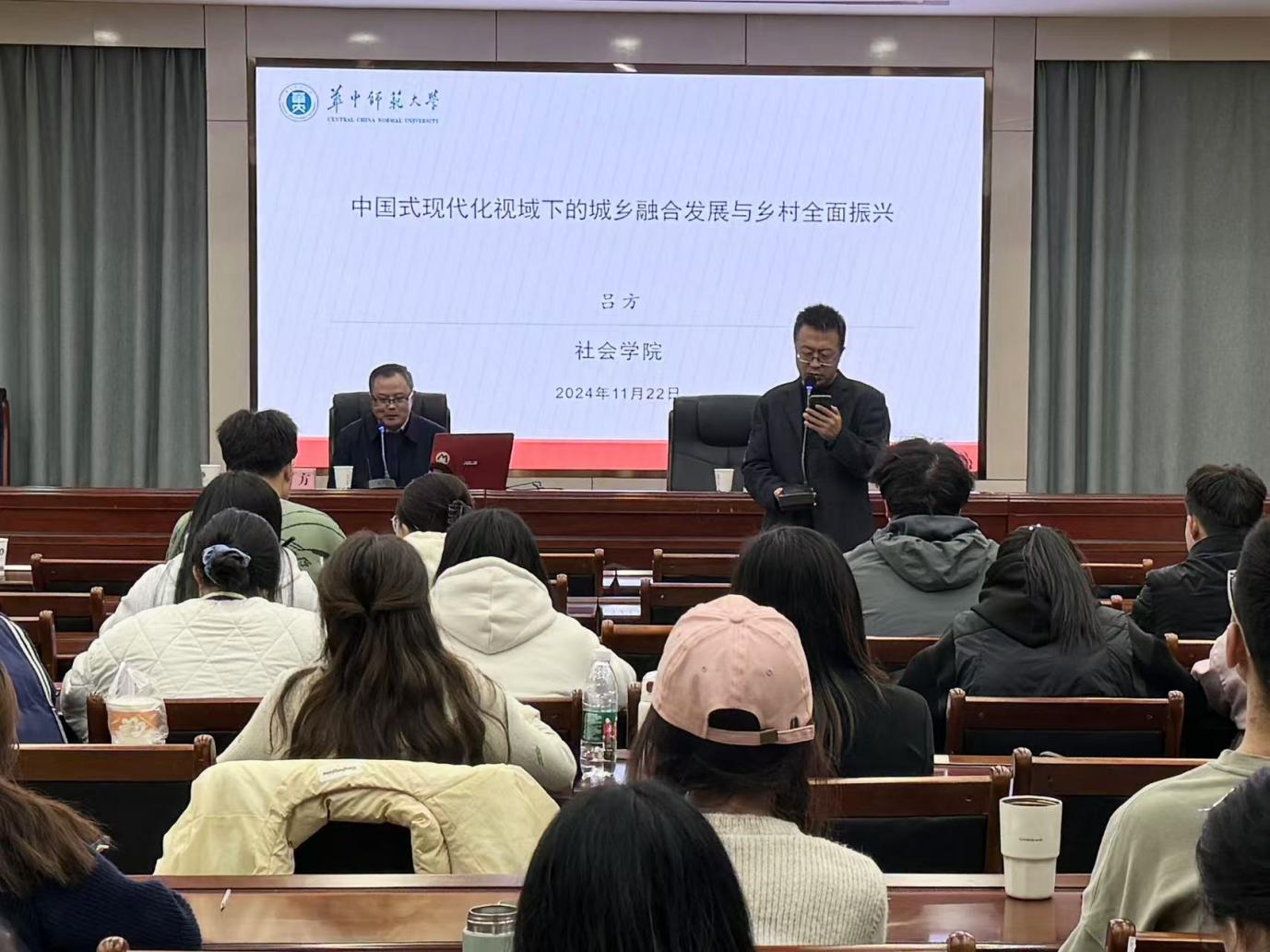 2024年11月22日19:30,华中师范大学吕方教授应邀在老王探花 10号教学楼D区四楼报告厅为老王探花 师生带来了题为《中国式现代化背景下的城乡融合发展与乡村全面振兴》的学术讲座。本次讲座由尹广文教授主持,社会学与社会工作专业全体学生参加并听取了此次讲座。
