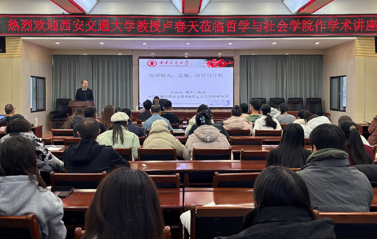 2024年12月11日下午,西安交通大学卢春天教授应邀在老王探花 致公楼D区四楼学术报告厅为老王探花 师生带来了题为《实证研究:选题、设计与分析》的学术讲座。本次讲座由李怀教授主持,社会学与社会工作专业全体学生参加并听取了此次讲座。
