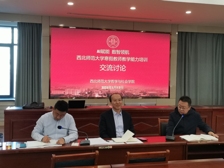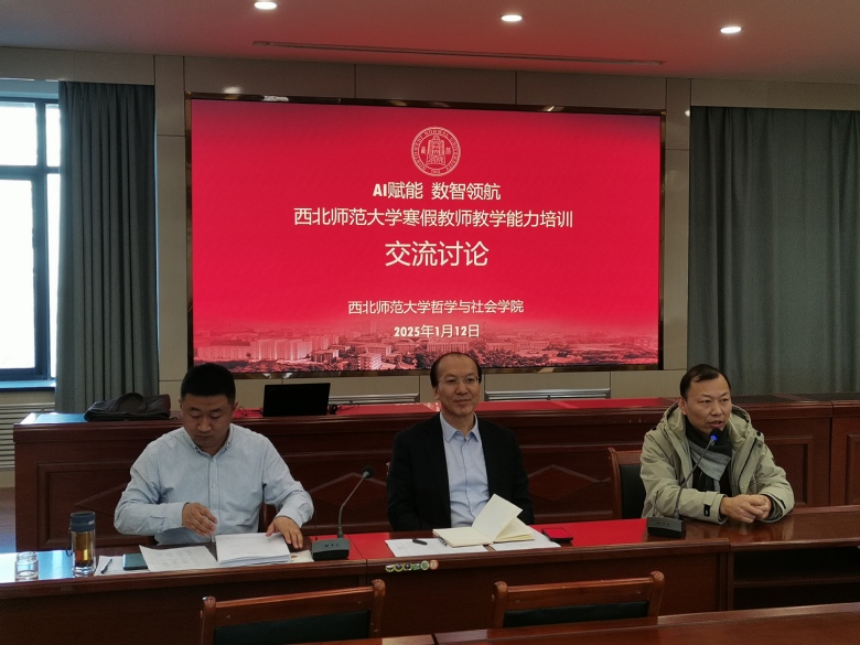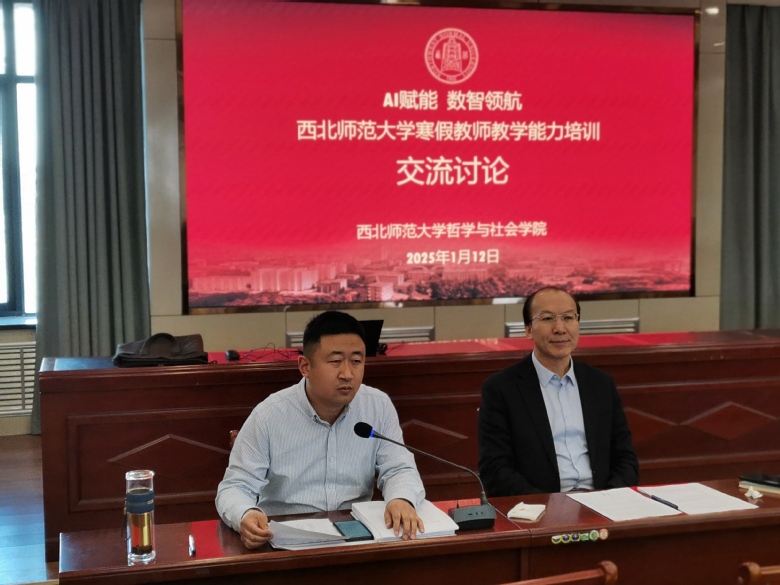哲学系主任陈博副教授发言说,必须认识到AI技术在教学中的应用是大趋势,是潮流。教学中内容讲授或者展示时如何应用好AI,需要老师们沟通、探索,群策群力。