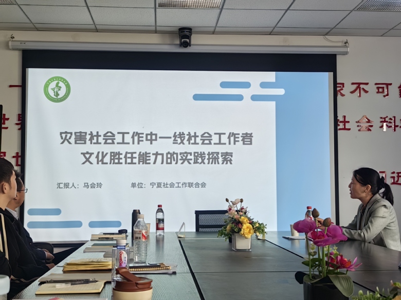 在行动案例分享环节,马老师以“双轨叙事”呈现社工职业图景:一方面追溯个人成长脉络,从原生家庭的向善启蒙,到志愿者、实习生阶段的困惑与突围,再到通过学术研究与实务反思实现的职业进阶,清晰勾勒其“实践—反思—成长”的路径;另一方面聚焦灾区服务实践,以积石山县残障家庭走访为例,解析灾害社会工作中文化胜任力的实践逻辑,强调服务前需储备地方文化知识,服务中需以尊重民俗为切入点,以专业伦理推动灾区服务精准落地。