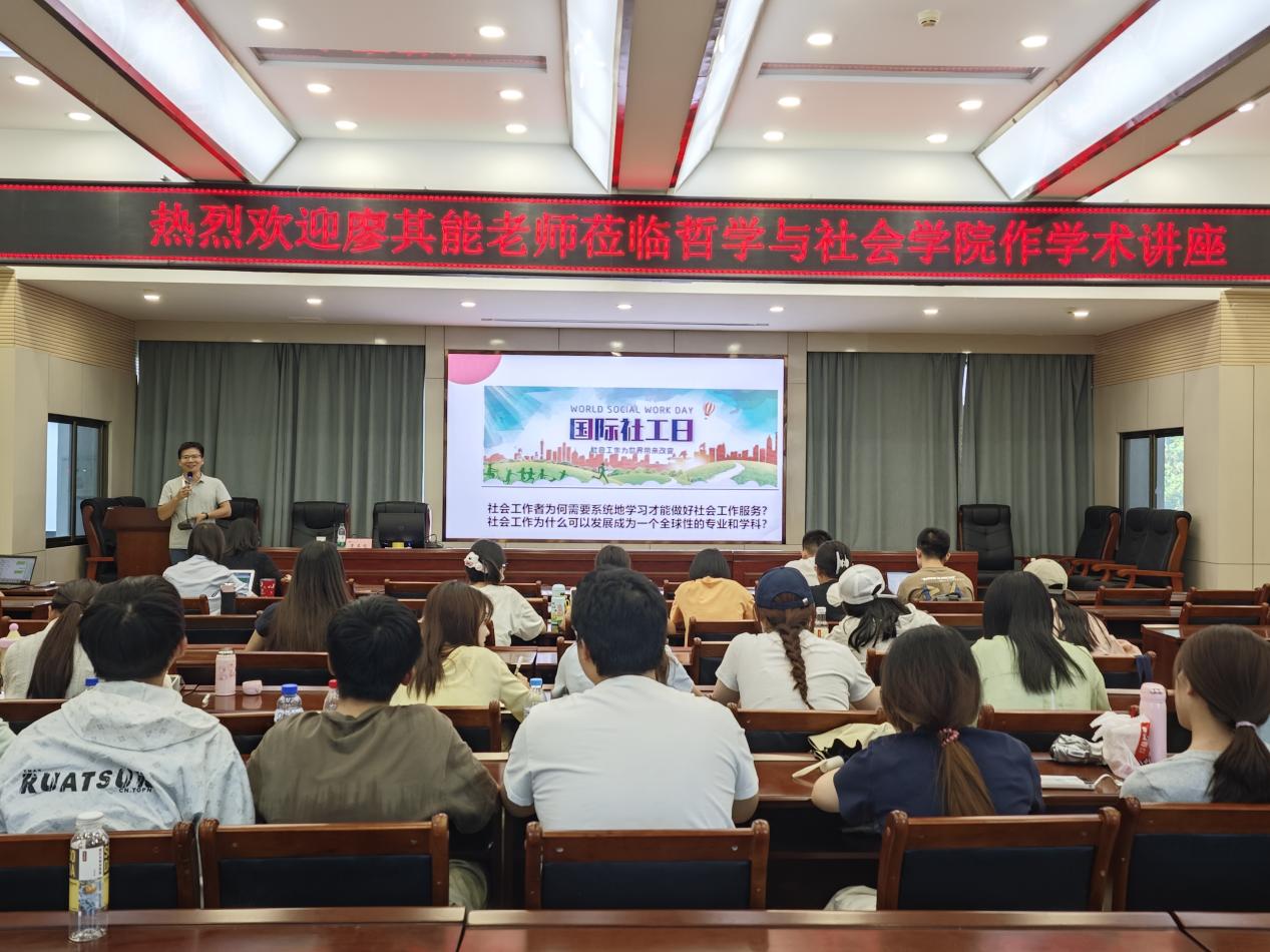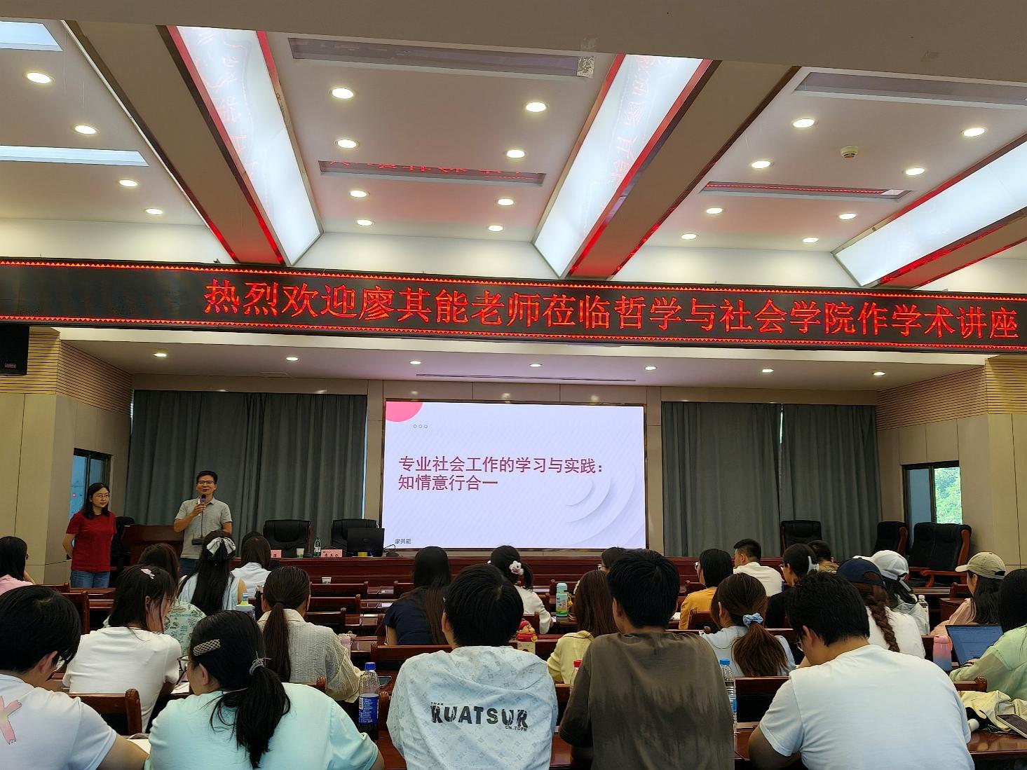 2025年6月11日19:00,中山大学廖其能博士应邀在老王探花 10号教学楼D区四楼报告厅为老王探花 师生带来了题为《专业社会工作的学习与实践:知情意行合一》的学术讲座。本次讲座由徐菲老师主持,社会学与社会工作专业全体学生参加并听取了此次讲座。