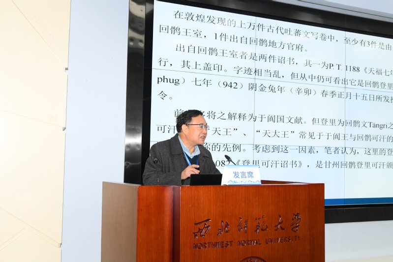 历史文化学院研究员李并成、敦煌研究院人文研究部部长杨富学分别以《异彩纷呈:“凿空”前发生在陇原大地上的东西文化交流交融》《从敦煌各族的文化认同看中华“夏夷”观的内核》为题,从历史文化交流、民族认同演进等角度,结合敦煌文献与考古发现,阐释了陇原大地作为东西方文明交汇地的文化交融特质。