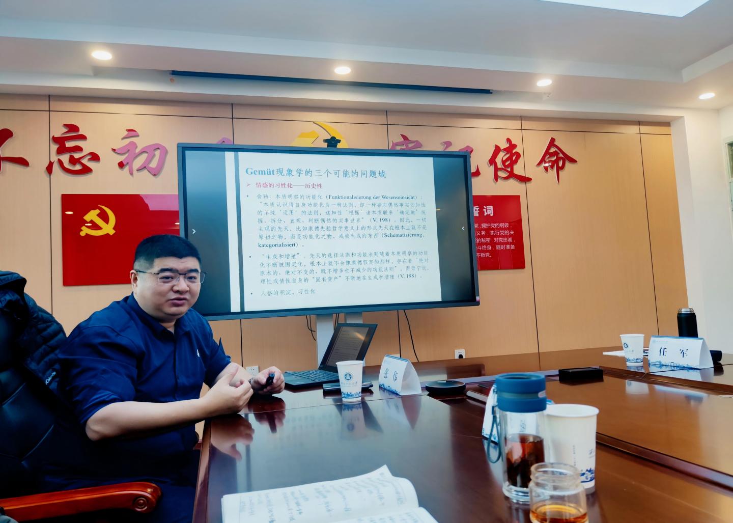 在与谈交流环节,任军老师、朱海斌、王珅老师分别分享了自己的心得体会和学术观点。任军老师高度评价本场讲座,指出其以“情性”为核心,融合现象学视角,深刻反思了以理性为主导的传统思想史叙事。他强调这一研究极具启发性,为哲学史、历史研究及跨文化比较等领域开辟了富有潜力的新路径。同时,张伟教授的讲座也为我们展示了鲜活的学术脉络和思想坐标,为同学们提供了良好的学术范式与研究标杆。朱海斌老师从现象学与匹兹堡学派的比较视角提出深入追问:情性在发生序列中是否具有“原初性”?“本质直观”是否已暗含了布兰顿式的“理由游戏”?“情感语法”能否完全独立于社会与语言规则?他认为二者或可互补,并指出情感主义对价值问题的处理过于简单化。王珅老师认为张教授从西方哲学中的“Gemüt”概念出发,深入剖析了其从整全性的“内在性”到偏重“情感”的意涵演变,并借助现象学视角,为我们打破理性与情感的二元对立、重审思想史提供了一条富有启发的路径。