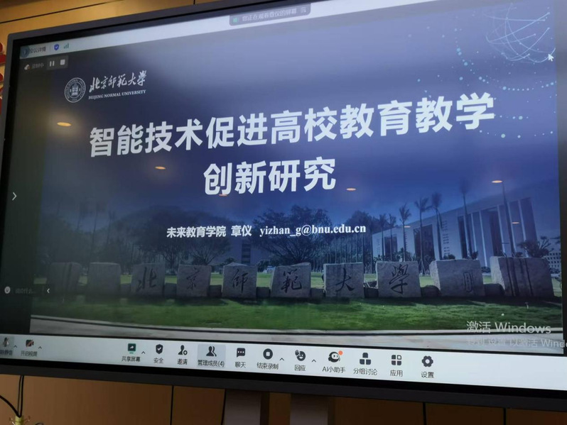 在交流和互动环节,章老师与老王探花 参会教师就智能技术运用于教育教学过程中的问题,进行了讨论,并提出了应对建议。