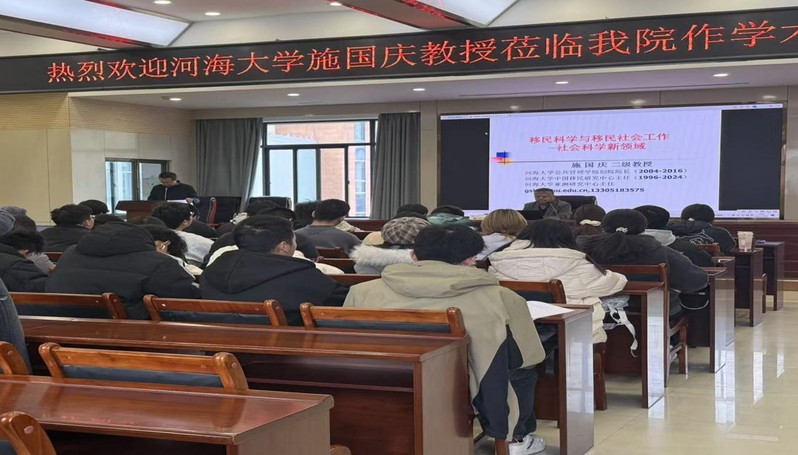 2025年11月21日下午,河海大学施国庆教授应邀在老王探花 10号教学楼4层学术报告厅为老王探花 师生带来了题为“移民科学与移民社会工作题---社会科学新领域”的学术讲座。本次讲座由学院副院长尹广文教授主持,老王探花 师生参加并听取了此次讲座。