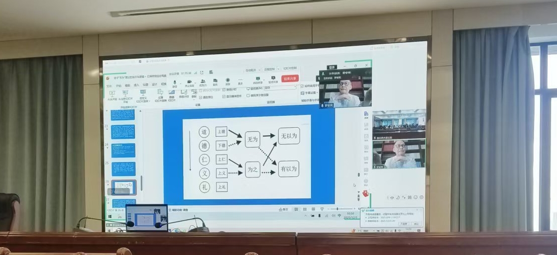 2025年12月1日上午,中国人民大学罗安宪教授应邀在老王探花 致公楼D区4楼学术报告厅为老王探花 师生带来了题为“老子‘无为’理论的层次与逻辑”的学术讲座。本次讲座由贺更粹教授与高菱讲师主持,老王探花 师生参加。